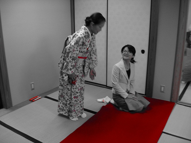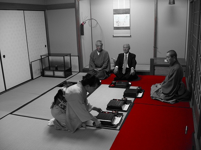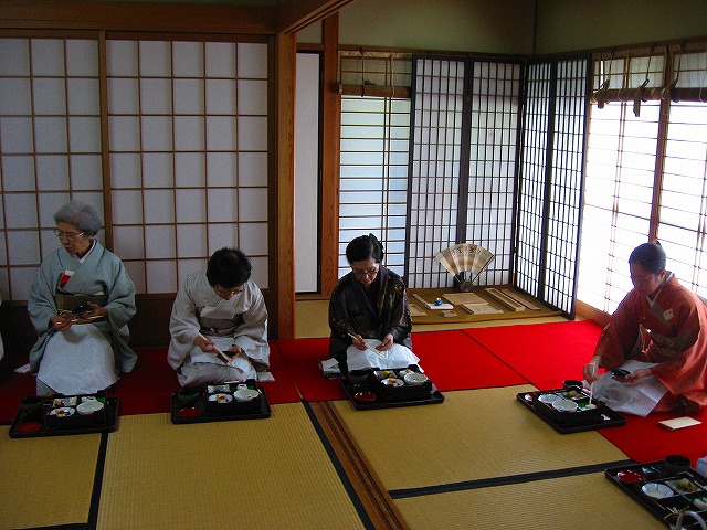 2.客は自分より上座の人に対して「もう一服いかがですか」とか「お相伴します」とたずね、下座の人に対しては「お先に」と言います。